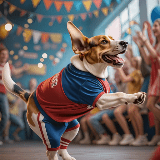 '응원복 입고 사람처럼 두발로 춤추고 있는 바셋하운드' 라는 문장을 썼습니다