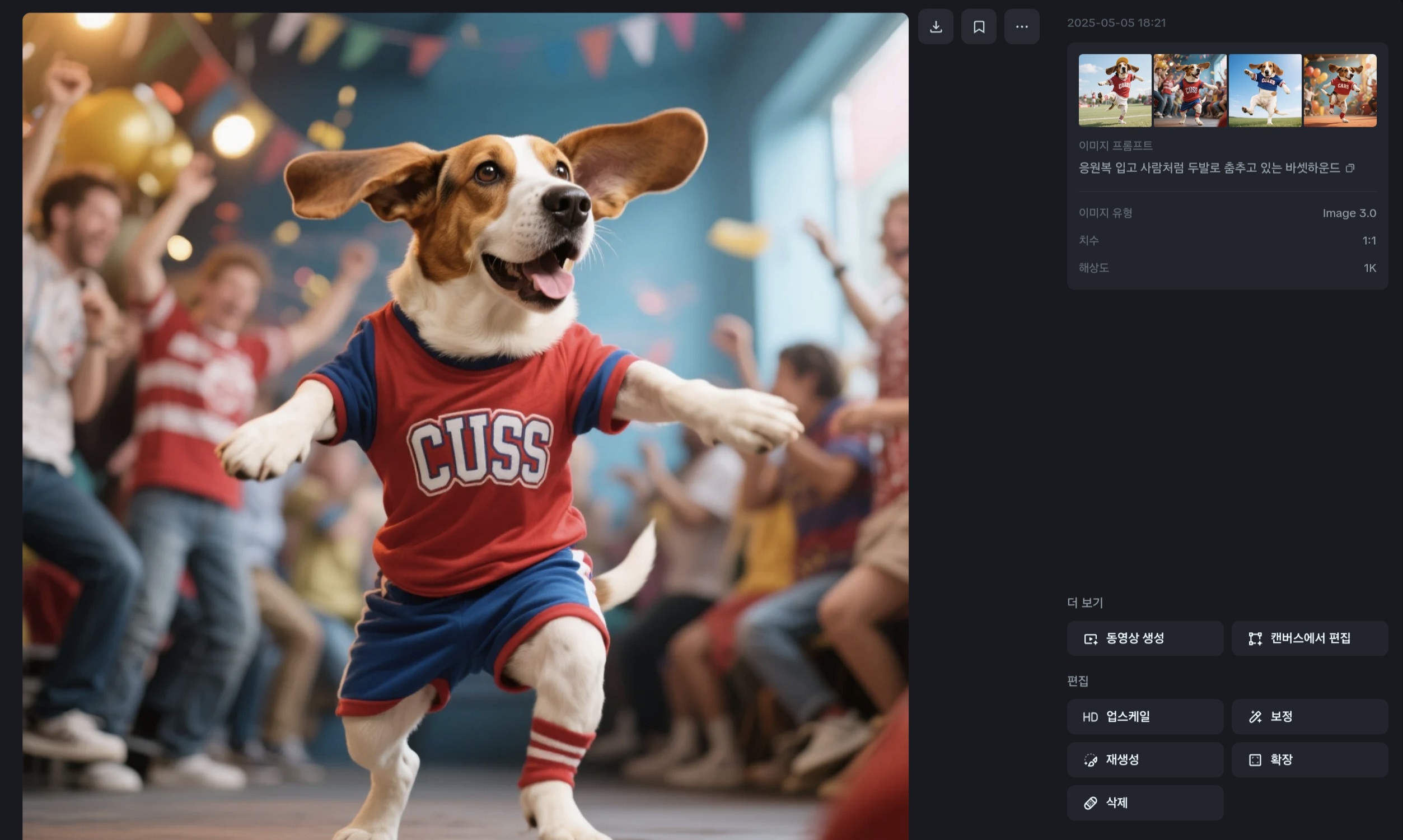 원하는 이미지를 클릭해 다운로드하거나, 추가 편집(확장, 리터치 등)을 할 수 있습니다.