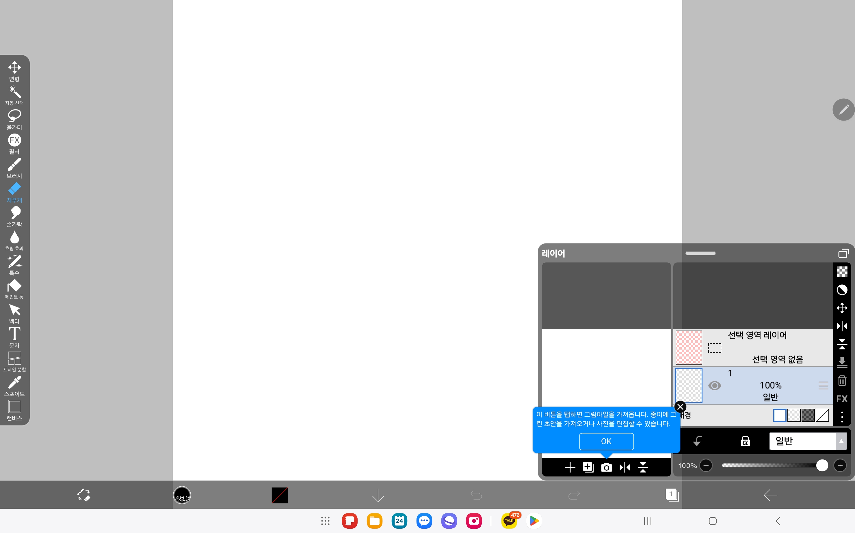 카메라 버튼을 누르면 갤러리에서 이미지 파일을 불러 올 수도 있습니다.